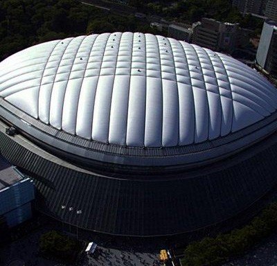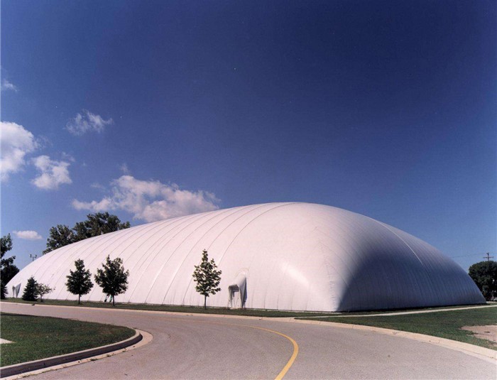 氣膜結構由于只承受張力,可使材料受力性能得到充分發揮,加之其獨特的性能特點和優勢,當前已越來越廣泛地應用于大跨度結構建筑中。它以優良的織物為材料,由膜內空氣壓力支承膜面,或利用柔性鋼索、剛性支撐結構通過彎曲內面力傳送,將膜面繃緊,從而形成具有一定剛度、張力,能夠覆蓋大跨度空間的膜結構體系。